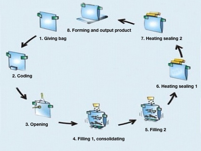 | Sako materialoj | Heat sealable filmo kiel PA / PE, PET / PE, AL-filmo ktp. |