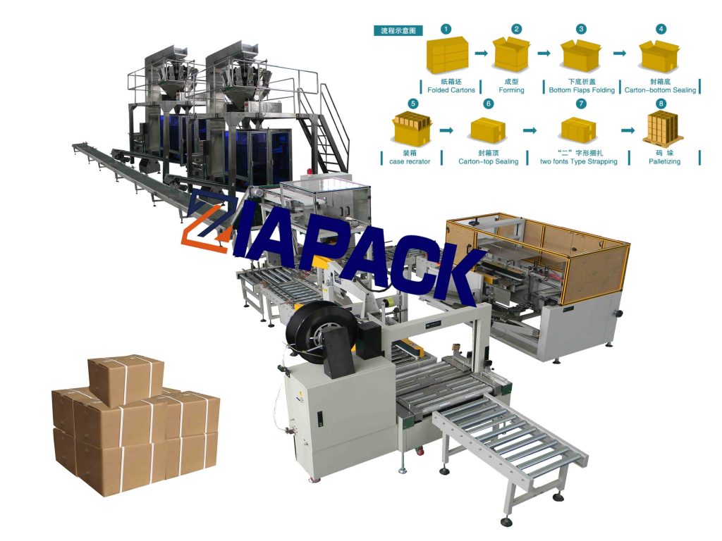 - Ĝi povas labori kun la filmo-pakaĵmaŝino, kazaj pakisto kaj envolvanta maŝino por formi la fina linio de pakaĵ-linio.