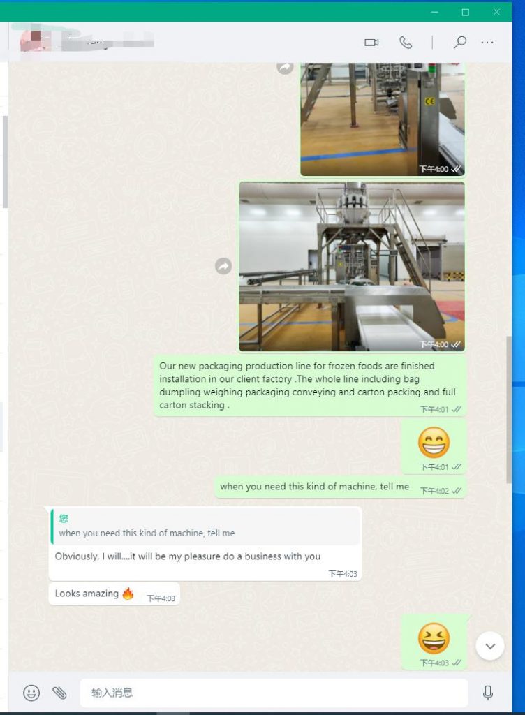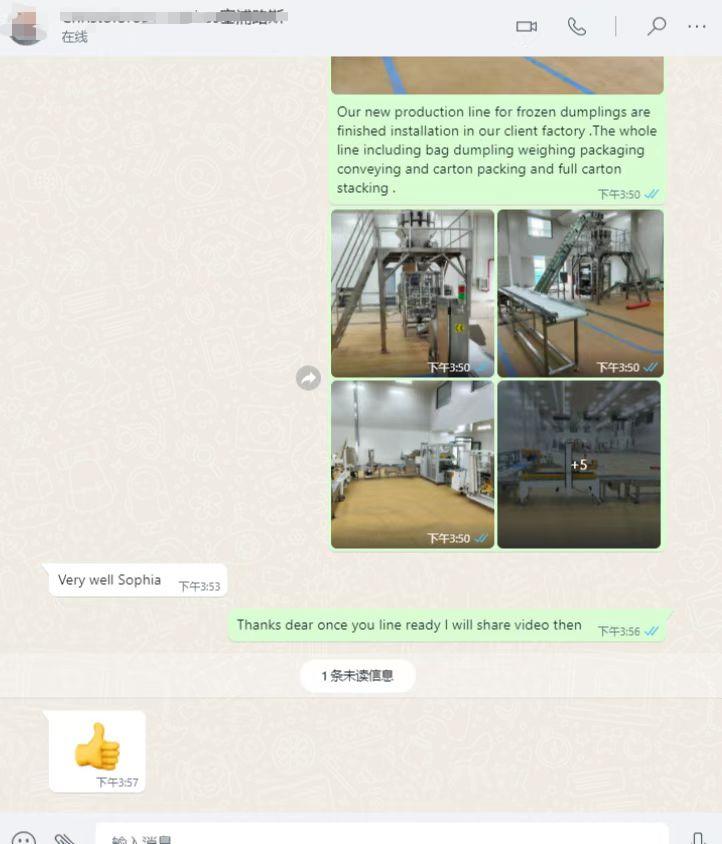 Alia aŭtomata pakado de sako de frostitaj manĝaĵoj kaj pleniga linio estis sukcese instalita en la fabriko de la kliento!
