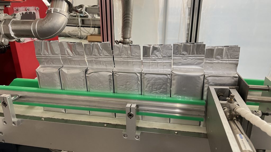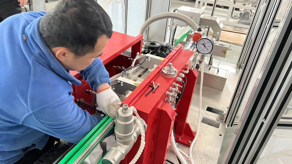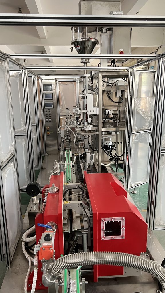 Nia kliento el Irano mendis unu aron de aŭtomata brika malplena sako formanta plenigantan pakmaŝinon por 250gramo-kafo-pulvoro. Kaj sekvu la postulon de la kliento, ke ni pentris la vakuan ĉambron por esti ruĝa koloro kiel Averto.