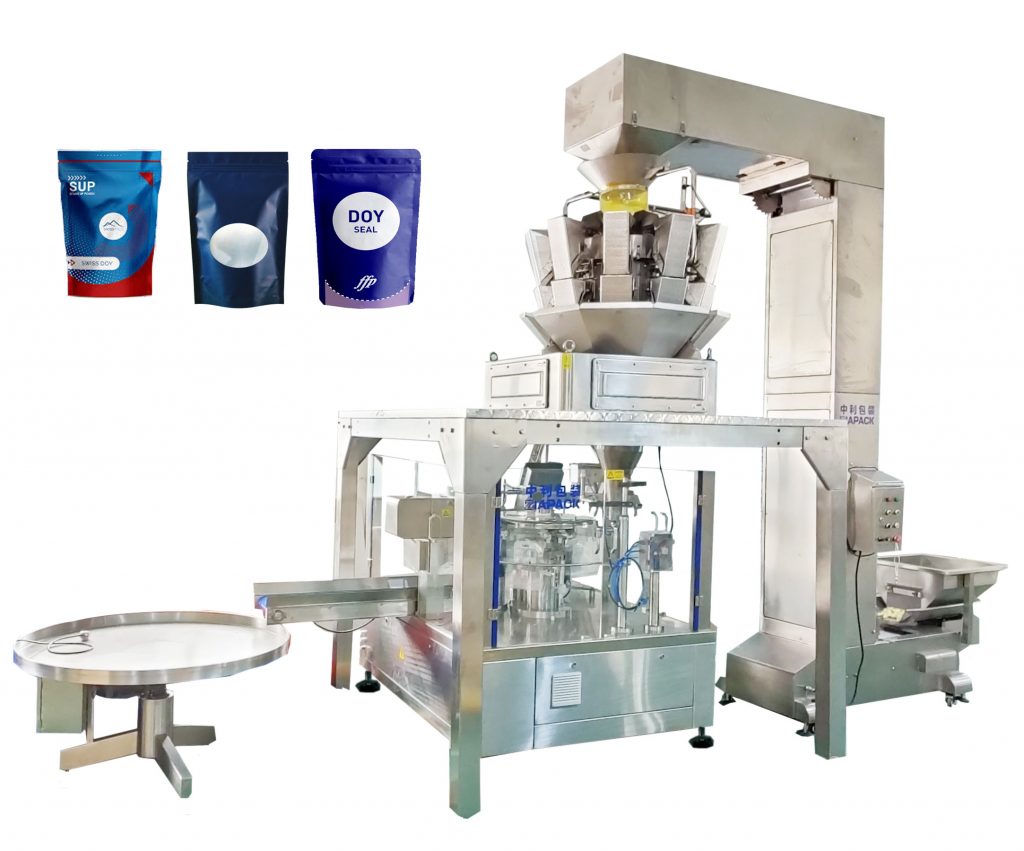 Antaŭa fabrikita poŝtmarko kaj stampaŝino, formita de 8 laboraj stacidomoj de efikeco kaj stabileco, emfazas la pakon de stand-up sako, zipper-sako, ŝprucaĵo, kaj diversaj antaŭ-faritaj poŝtoj. Kunlaboris kun malsamaj dosigaj sistemoj (kombinaĵo plifortiganto / linearaj plifortaj / ĝustaj ŝraŭboj / piŝaj plenkreskuloj) kaj aŭtomataj levaj transportistoj, ĝi estas vaste aplikata al grimuloj, likvaĵoj kaj pulvoro.