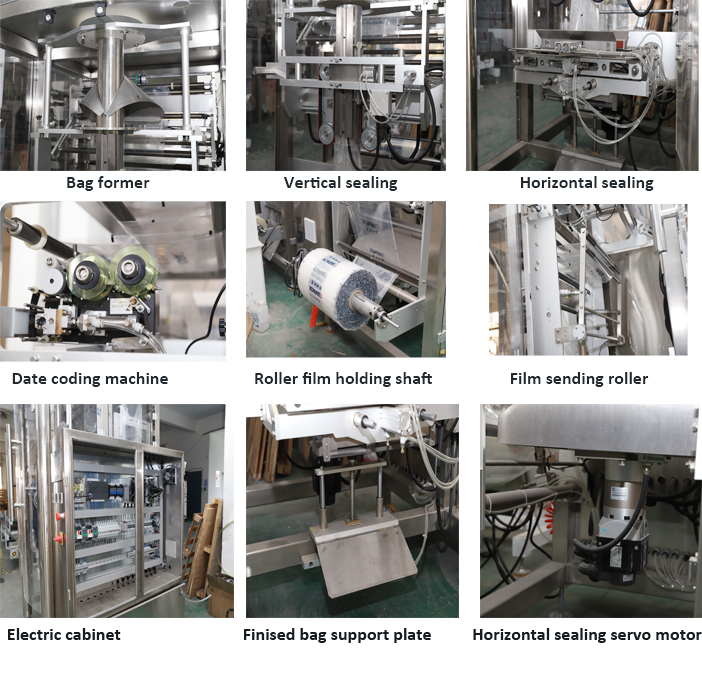 Ĉi tiu maŝina unuo inkluzivas unu aron ZL720 vertikala sako formanta plenigantan sigelmaŝinon kaj unu aron ZLC-5000 Kvar sitela pezilo, Unu aro DT3 vertikala lifto kaj eliga transportilo. sigelado kaj dato kodigo .Widely uzanta por paki laton , detergente pulvoro , rizo , fazeolo kaj aliaj granular produkto .